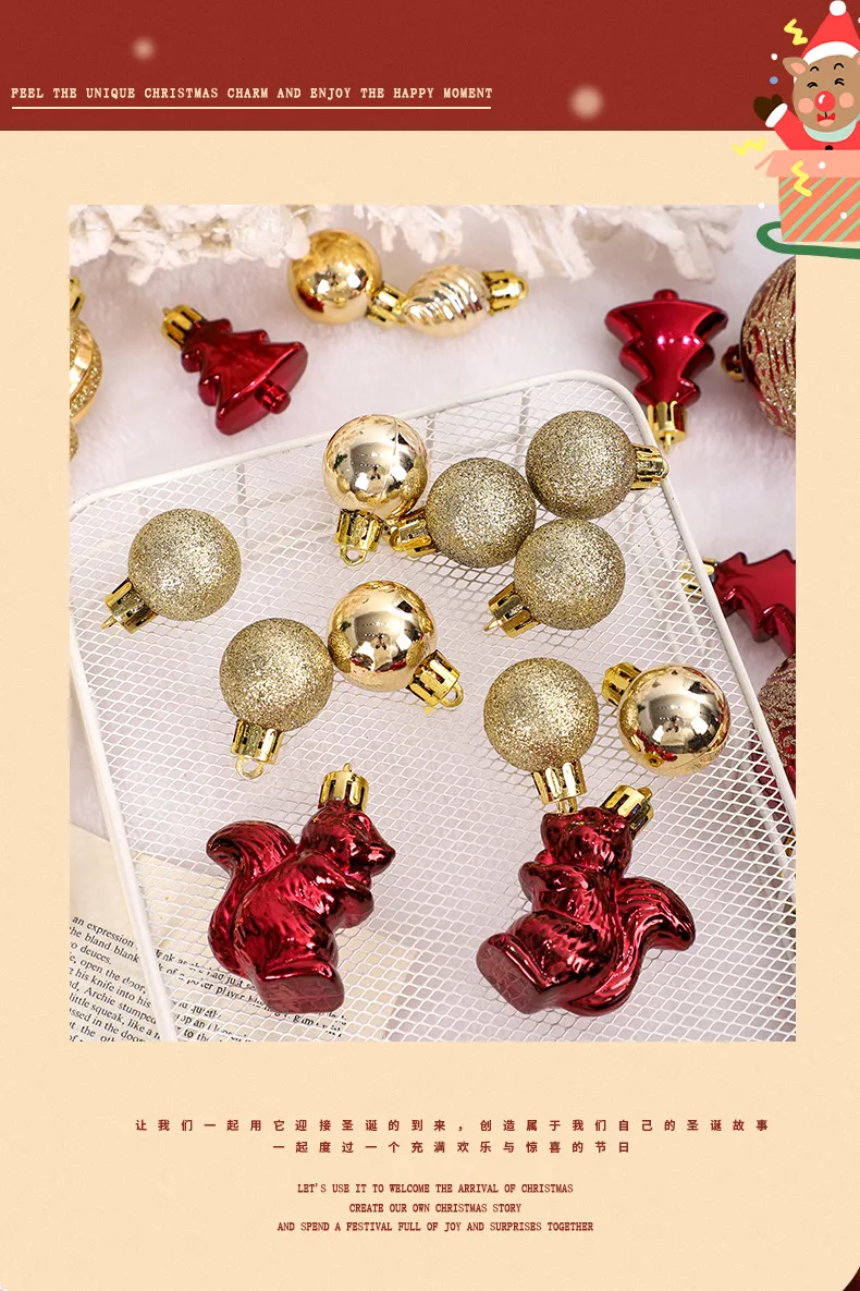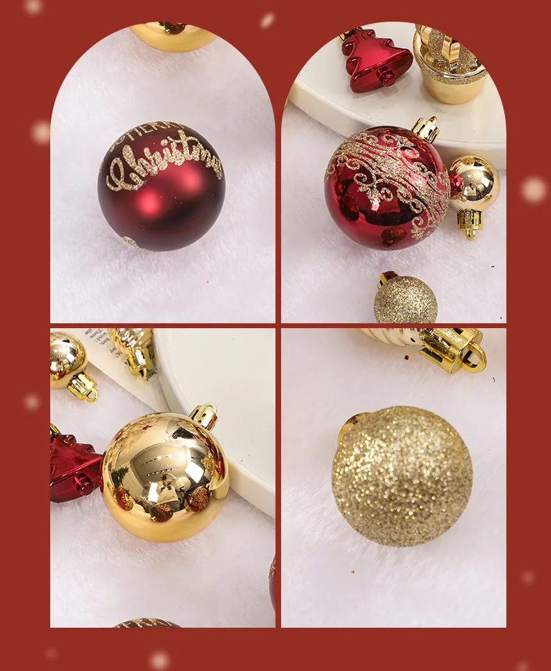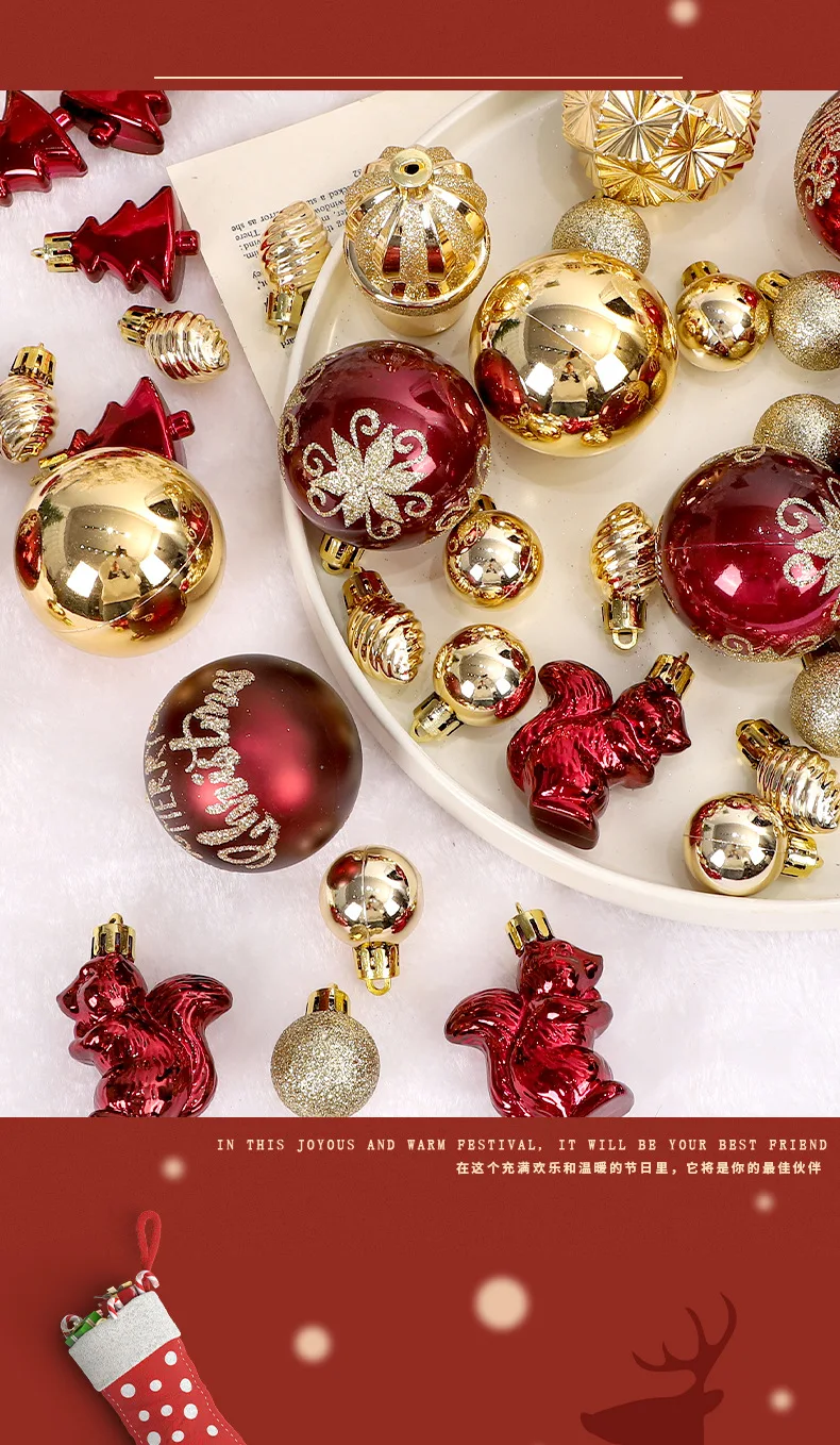 42-Piece Christmas Ball Set Wine Red & Gold Painted UV Printed Cross-Border Tree Hanging Decorations for Festive Holidays